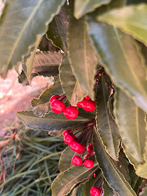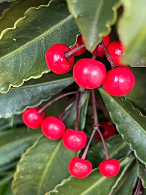 万両の実が一回り大きくなっています。