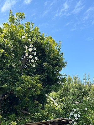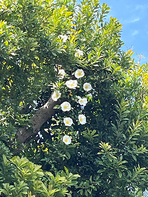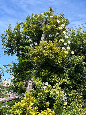 今年はヤマモモの上にまで枝が伸び花が咲いています。